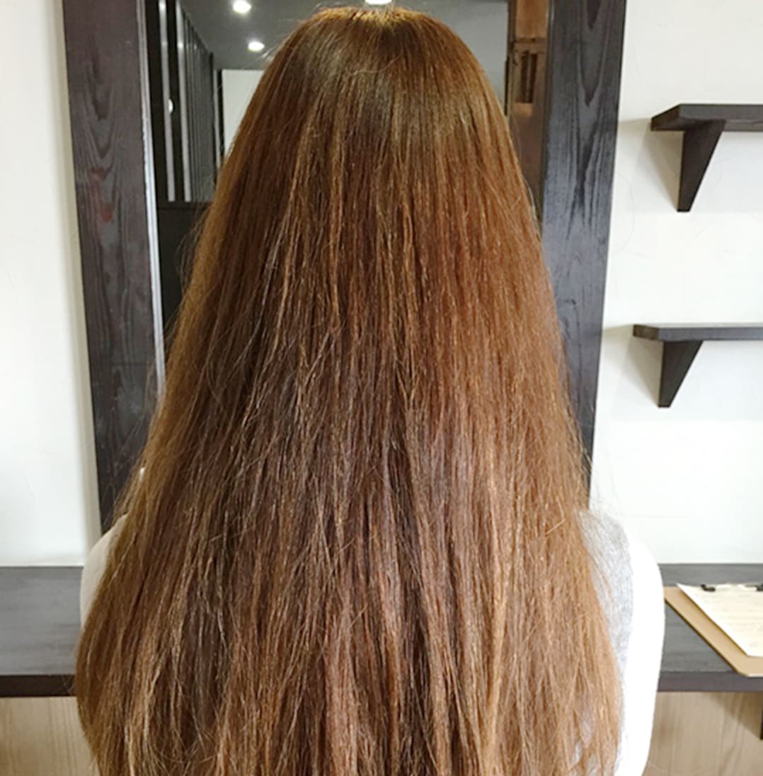 仕上がり後の髪の状態を一緒に確認し、これからのお手入れ方法やお家で良い状態を保つためのアドバイスをさせていただきます。仕上がった髪は、今まで経験したことのないようなツヤと手触り感に・・・・・。