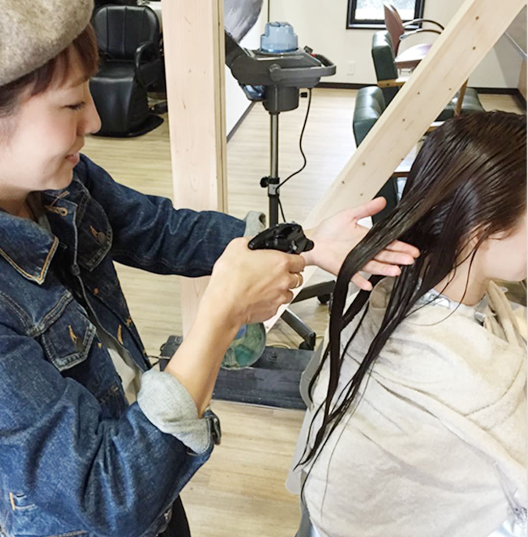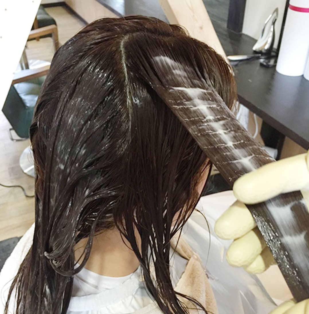 補給した栄養分が出ていかないように潤いを与える天然の保湿成分を塗布していき、キューティクルを閉めて潤いと栄養分を閉じ込めていきます。